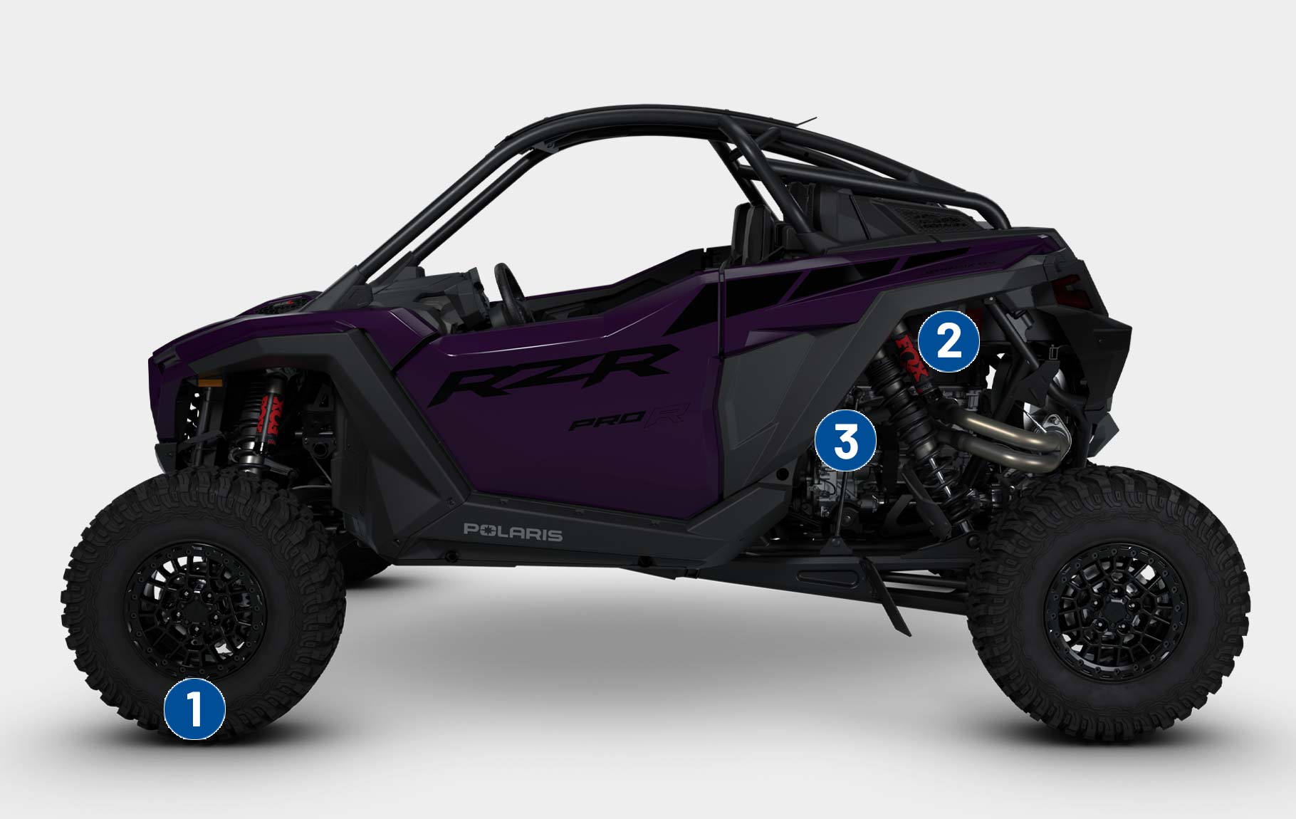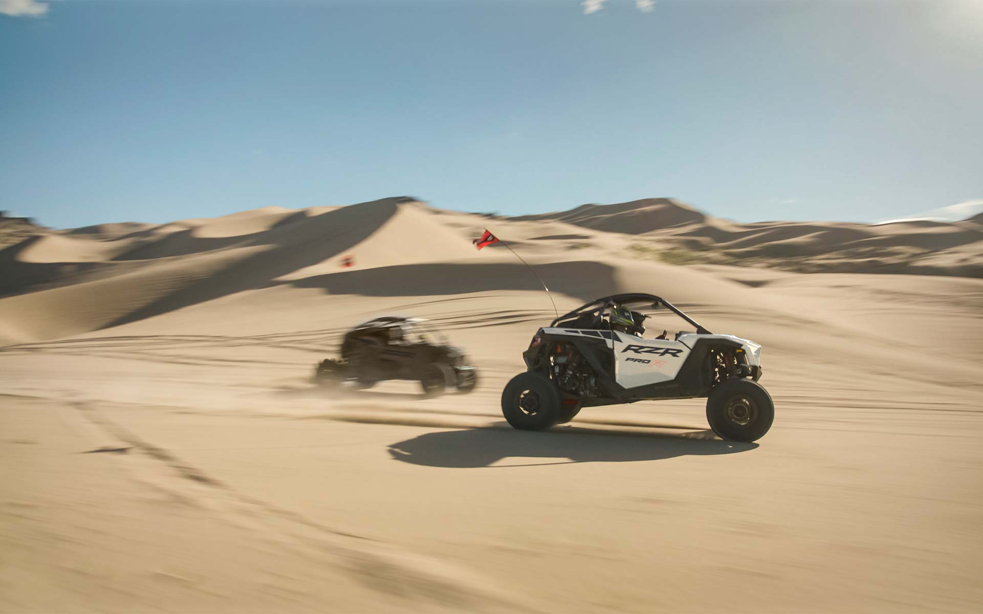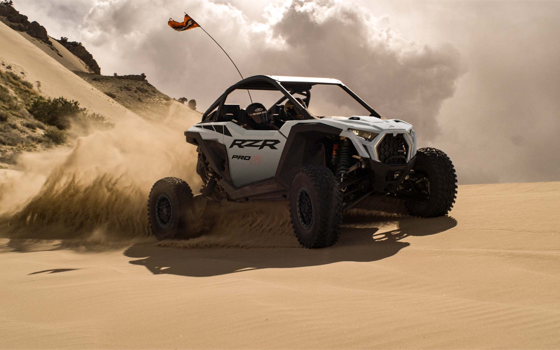 Surpreende todos com uma máquina off-road concebida para dominar. O RZR Pro R oferece desempenho de cortar a respiração para desafiar desertos, conquistar dunas e bater recordes fora de estrada. Nunca fiques em segundo lugar. Com o RZR Pro R, a vitória é sempre tua.