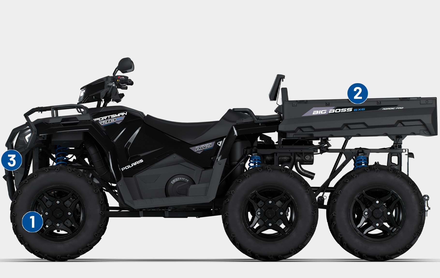 O Sportsman 6X6 570 da nova geração ostenta um novo design arrojado e está equipado com um chassis reforçado e capacidades 6x6 melhoradas, para uma condução mais suave e um conforto superior.